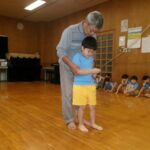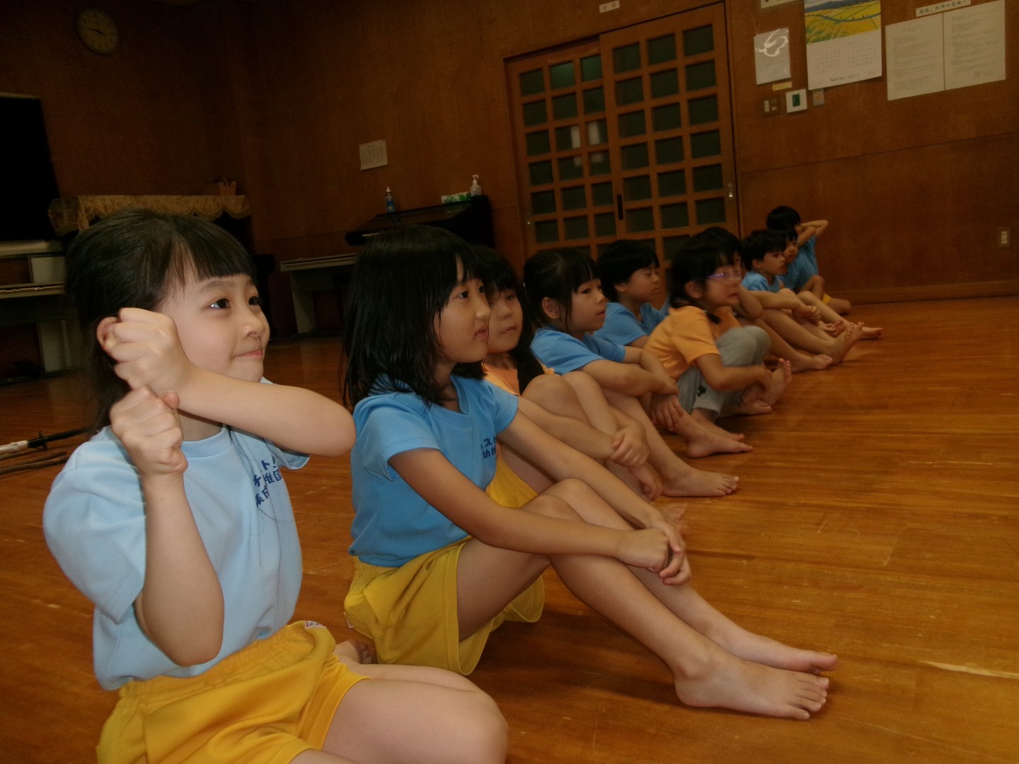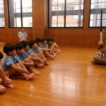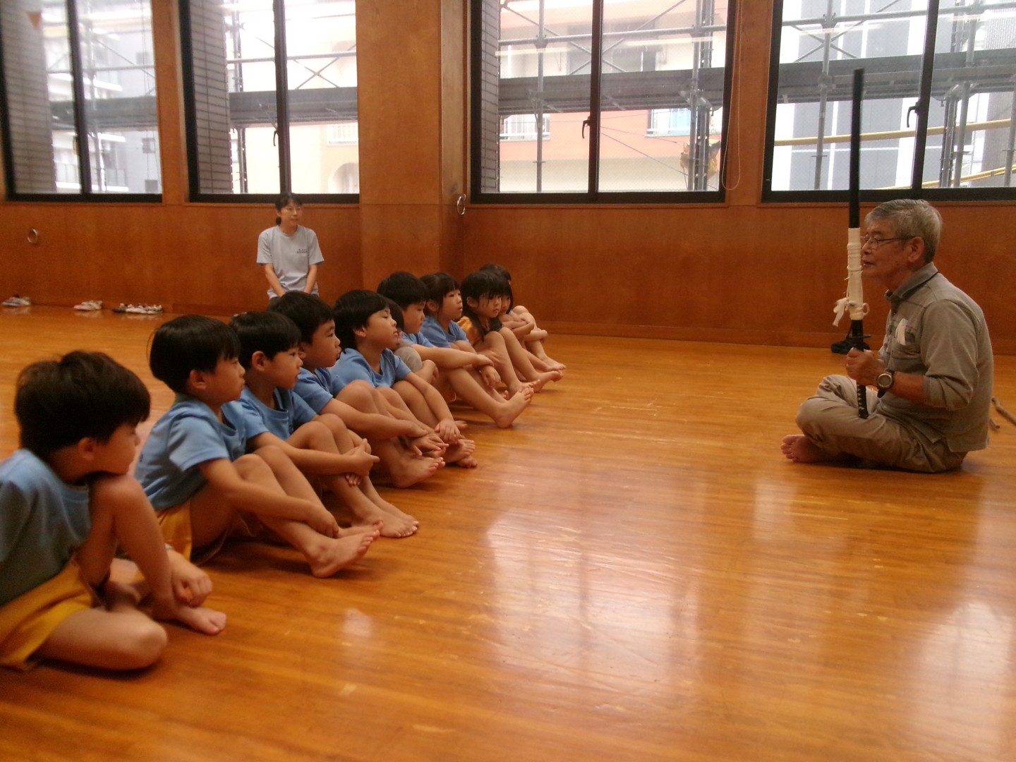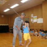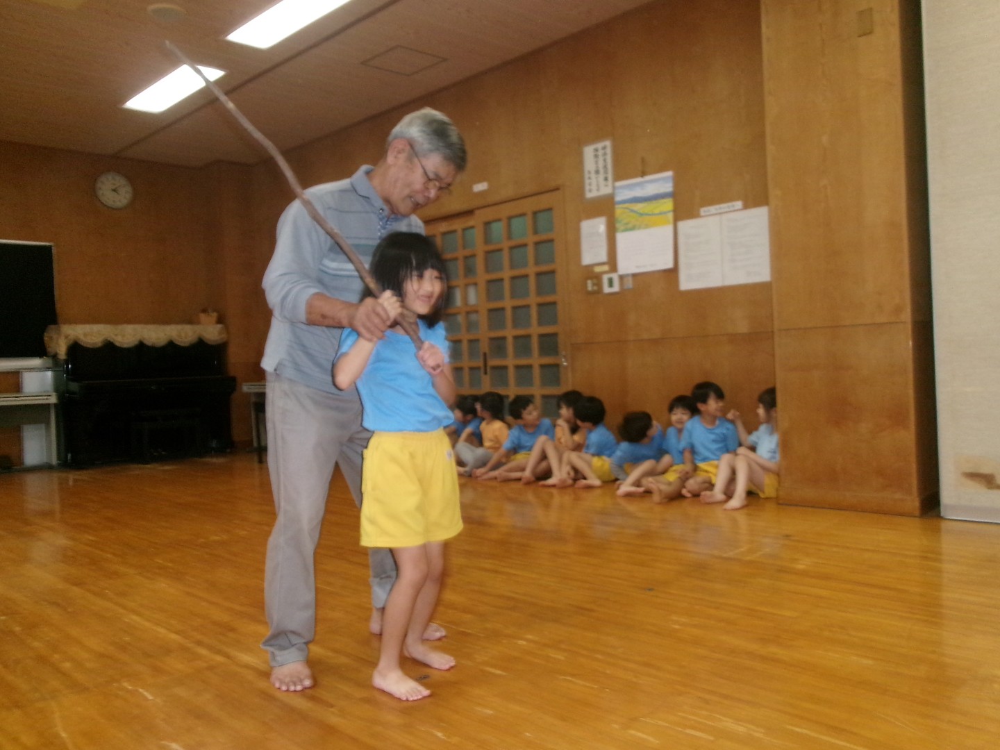 10の約束を皆で元気よく読み上げた後に、示現流体験を理事長先生指導の下、楽しく体験しました。
