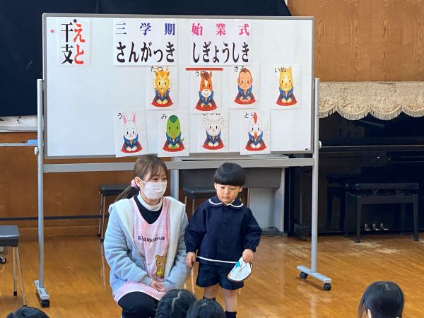 始業式終了後には新しいお友達(年少少児)の紹介もありました。